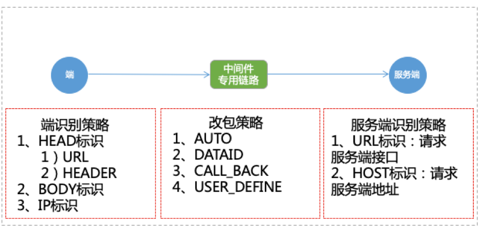 从中间件的角度,改包策略有四种,AUTO,DATAID,CALL_BACK和USER_DEFINE模式,分别满足不同的测试场景。