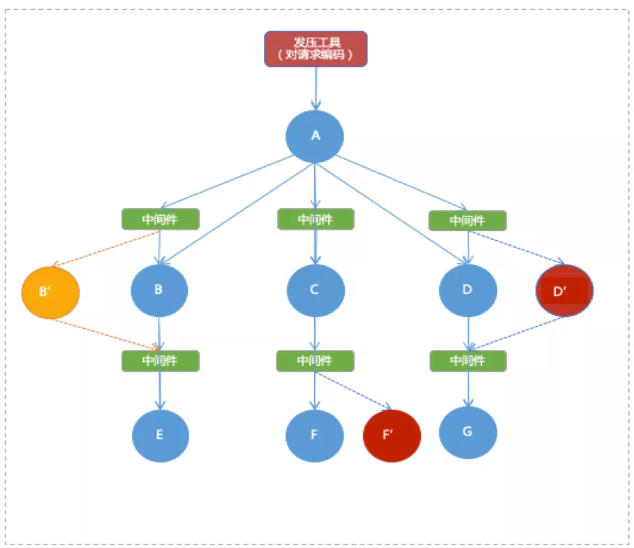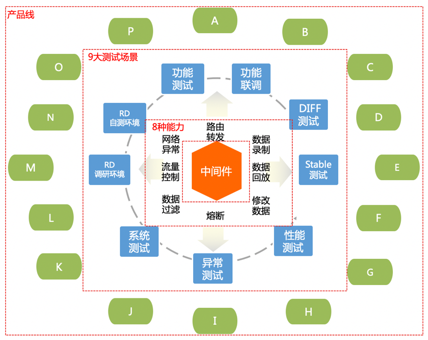 中间件从最开始的简单的网络代理不断发展,结合控制面强大的控制能力,通过对通讯数据和通讯行为方面的控制,逐步过渡到对整个系统的控制,中间件已经是测试环境的一部分,与被测模块共同组成用户所需的特定用途的测试环境。