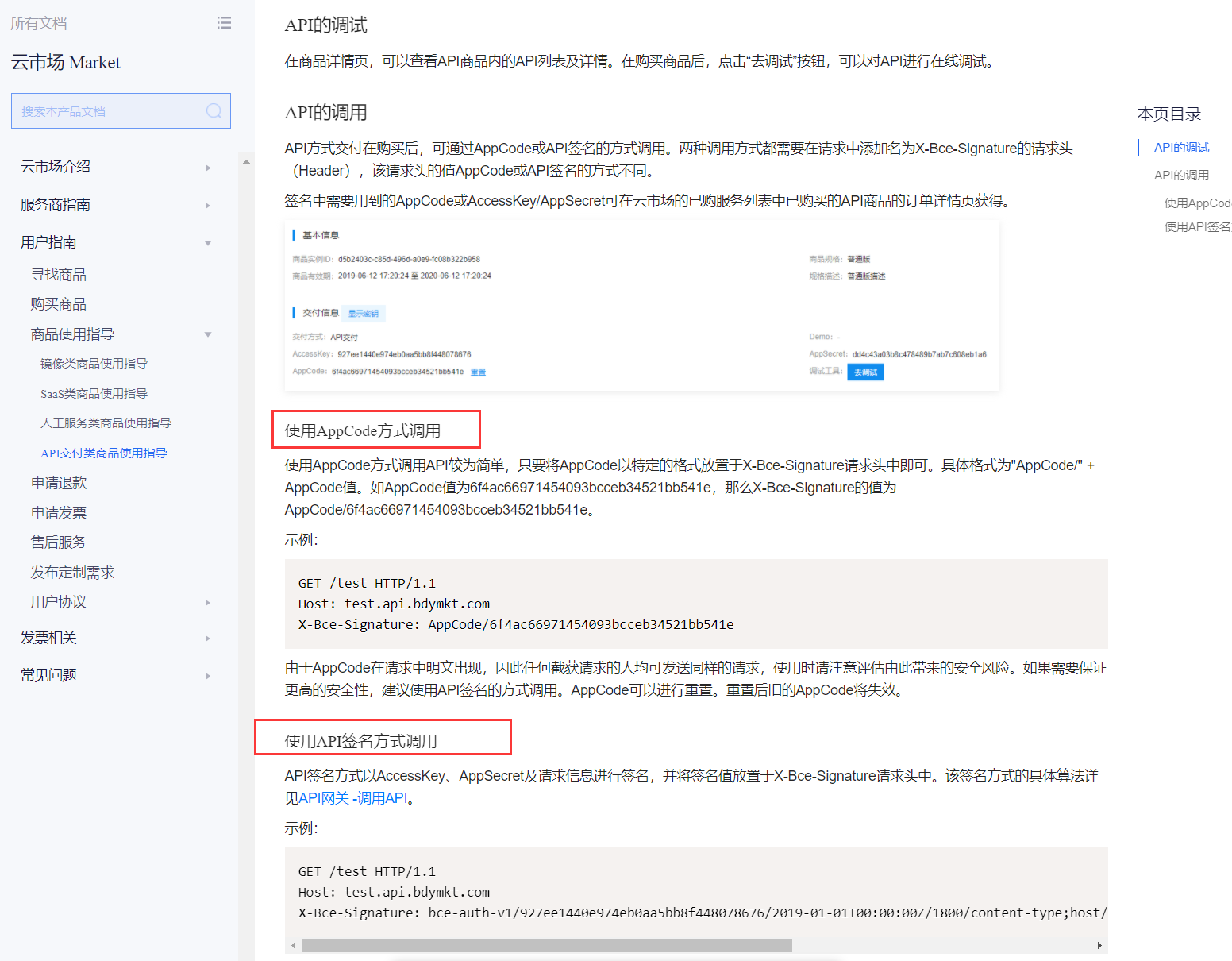我们首先点开API详情的交付方式后面的API交付类商品使用指南