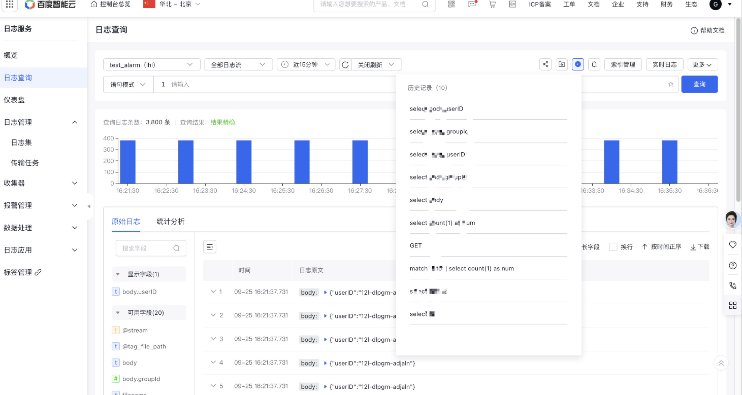 - 选择“产品服务>日志服务BLS”,进入“查询分析->日志查询”页面。