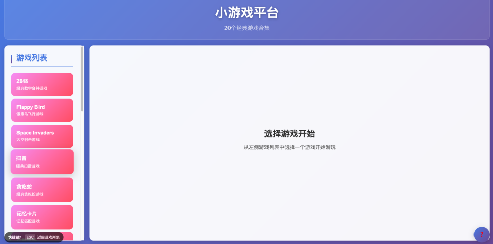 1实现一个小游戏平台,进去能有以下20个游戏可以玩: