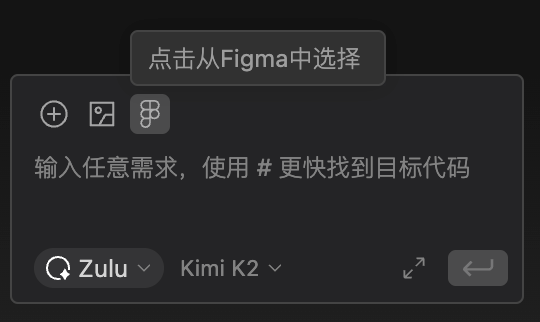 (1)打开 VS Code Comate 插件,在 Zulu 对话框中选择并点击Figma2Code智能体,粘贴 Figma 中复制的链接(首次使用该功能需要点击获取授权码)。