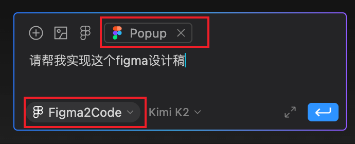 在figma设计稿中选中任意元素,点击右下角发送到对话,在Figma2Code智能体中进行对话即可。