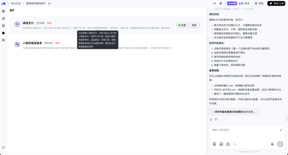 支持生成微信原生小程序,开发独立微信小程序,拓展应用发布生态。