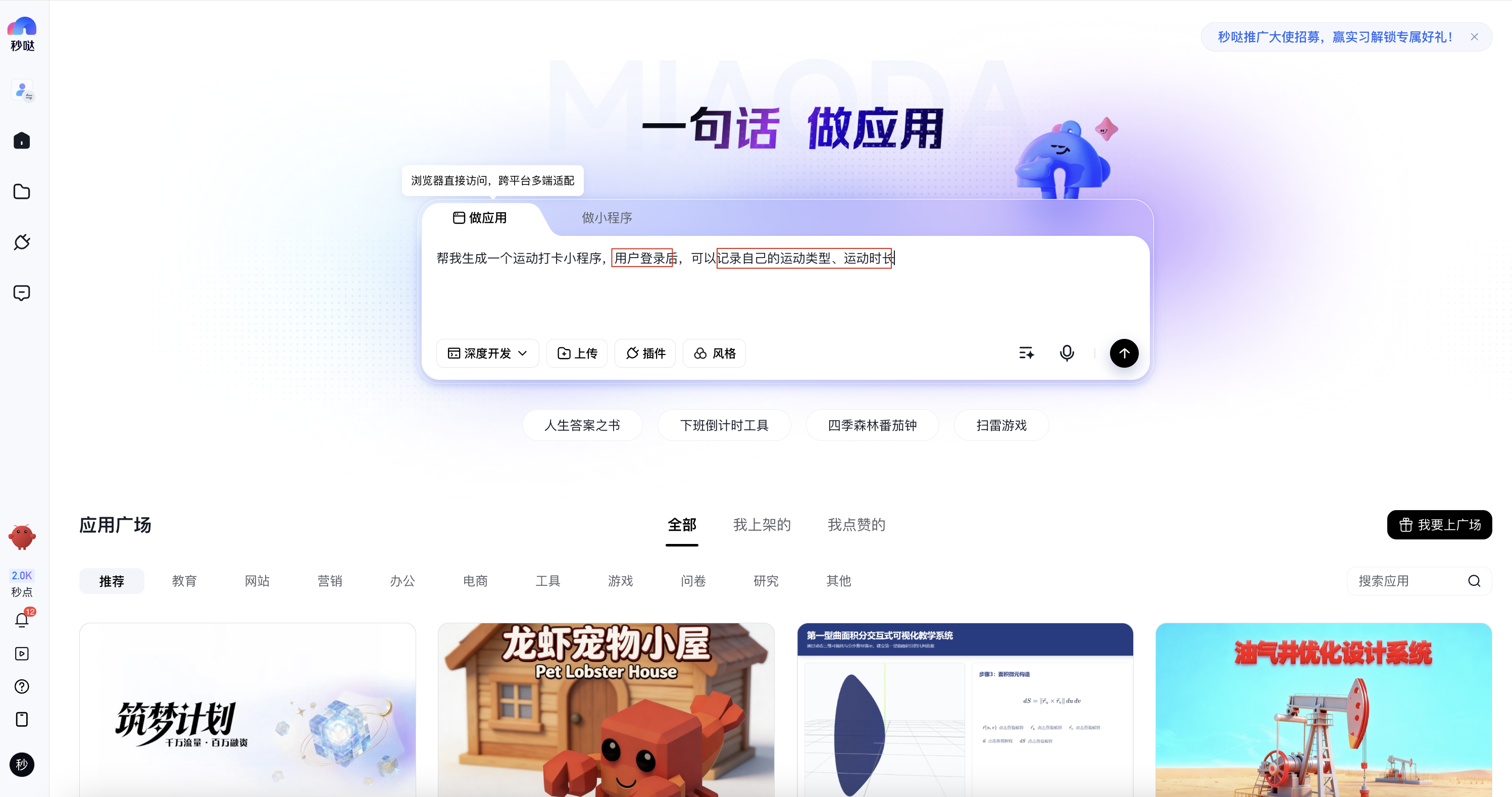 当应用涉及“用户体系”或“权限控制”时,秒哒将自动生成对应的用户管理与鉴权机制,登录体系自动生成,无需手动集成,用户数据与业务数据自动关联(如通过用户ID)。