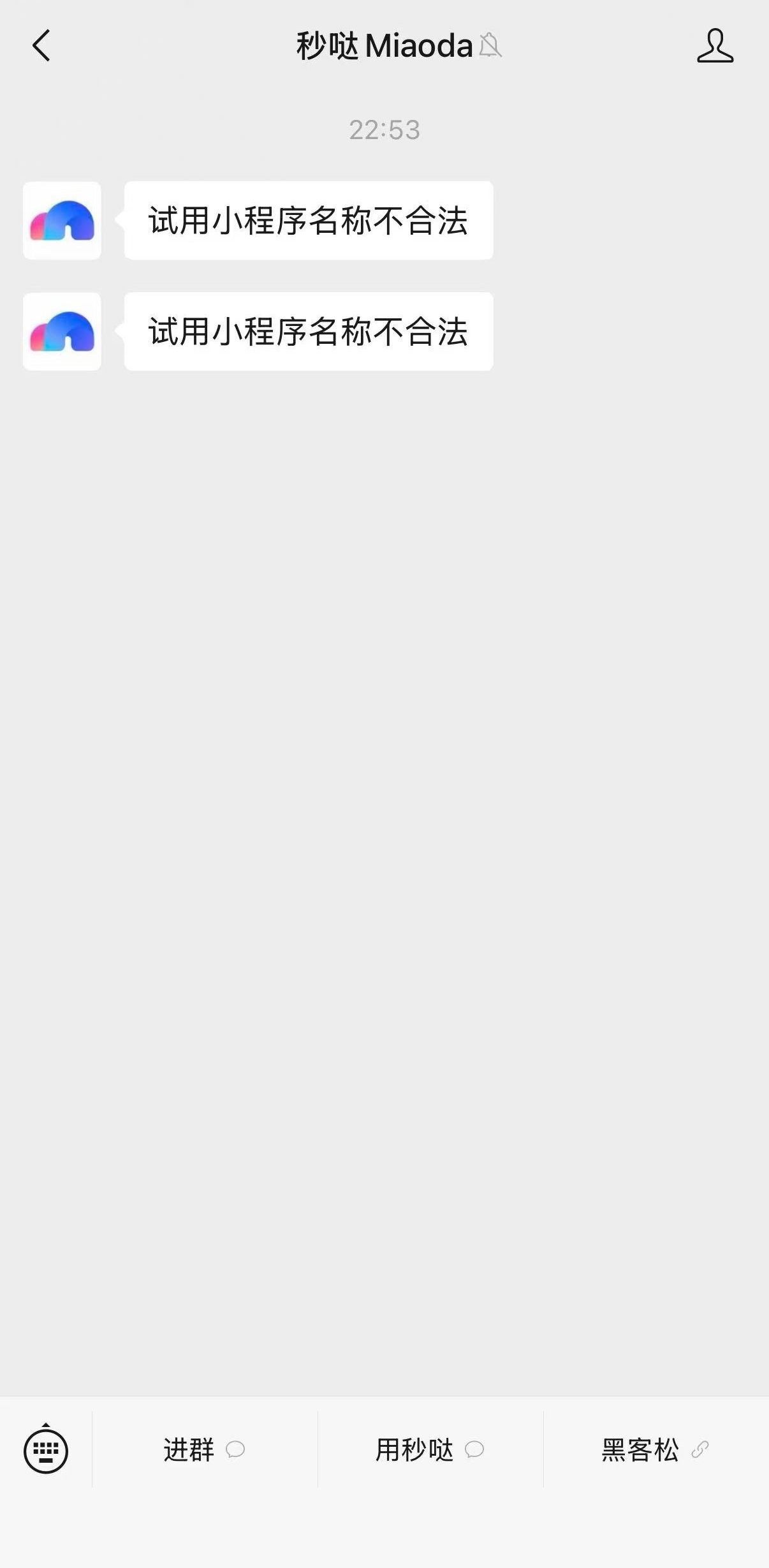 在您开发完成小程序提交给微信进行审核的时候,有时会出现微信官方返回的“试用小程序名称不合法”的返回信息,如下图。