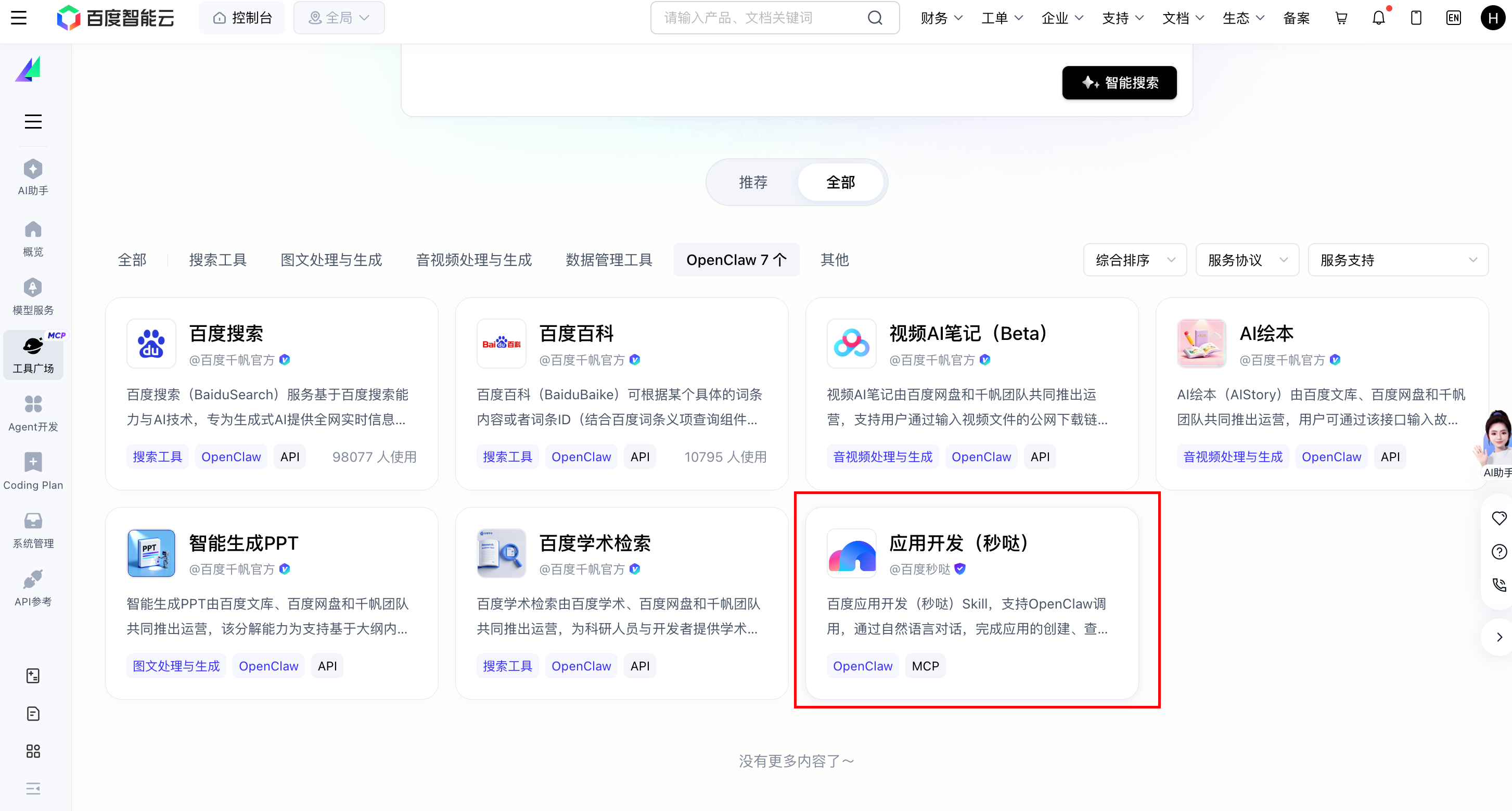 | 应用列表 | 支持查询对应账号下的应用清单,了解自己有哪些应用、应用生成状态和应用类型等 | “帮我看看我有哪些应用”“列出我的秒哒应用列表”“查一下我名下和“商城”有关的应用”(待更新) |