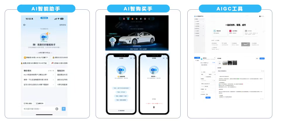 当用户说出“15万预算,省油、空间大的SUV”等信息时,AI智能助手便能快速锁定车型,并结合用户所在城市的优惠政策、口碑评价,定制具体的购车攻略、贷款方案等,就像用户身边随时在线、懂车又懂用户的专属顾问,真正做到 “所想即所得”。