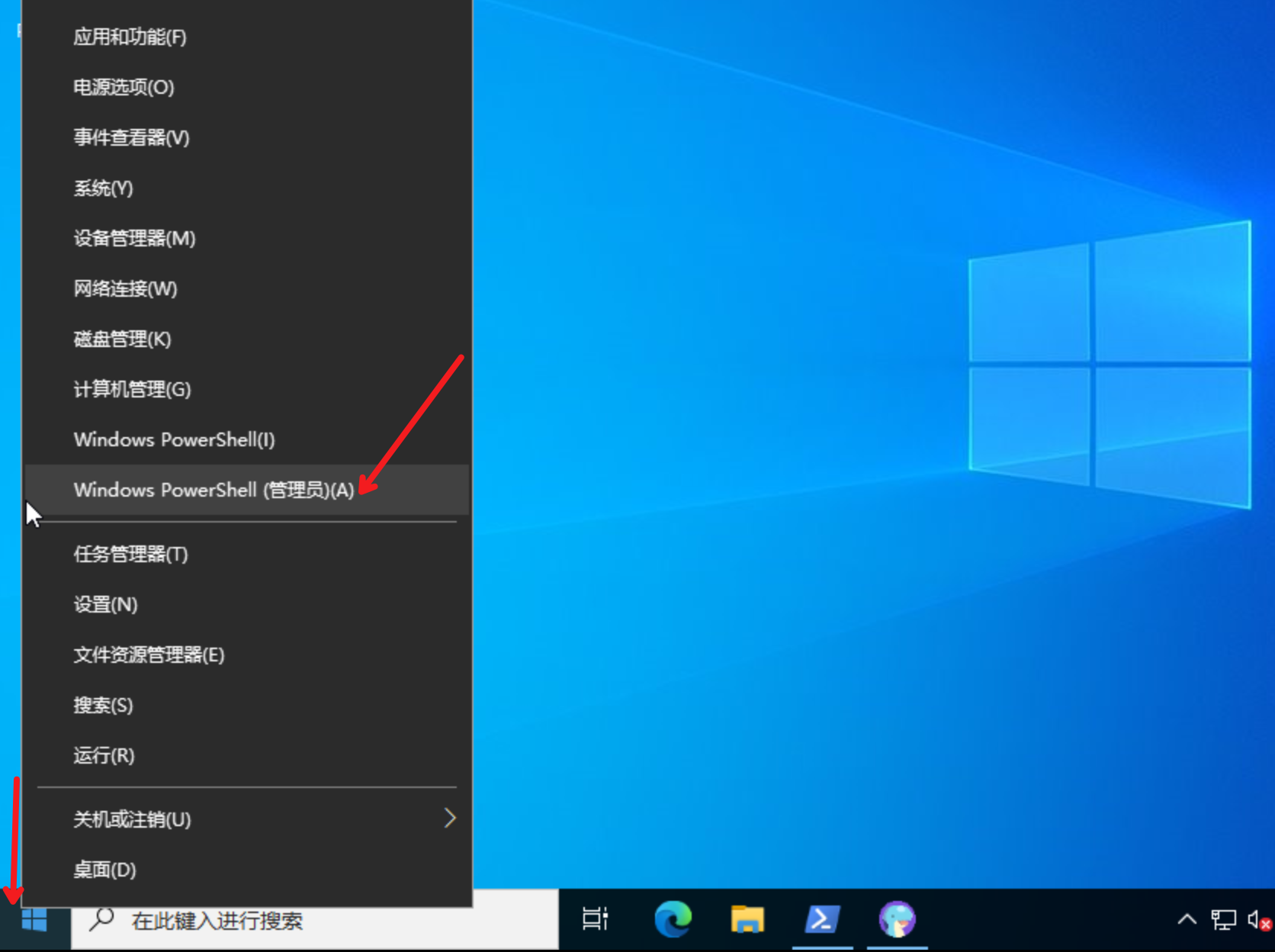 5.鼠标放到左下角 Windows 徽标上右击,选择 Windows Powershell打开。
