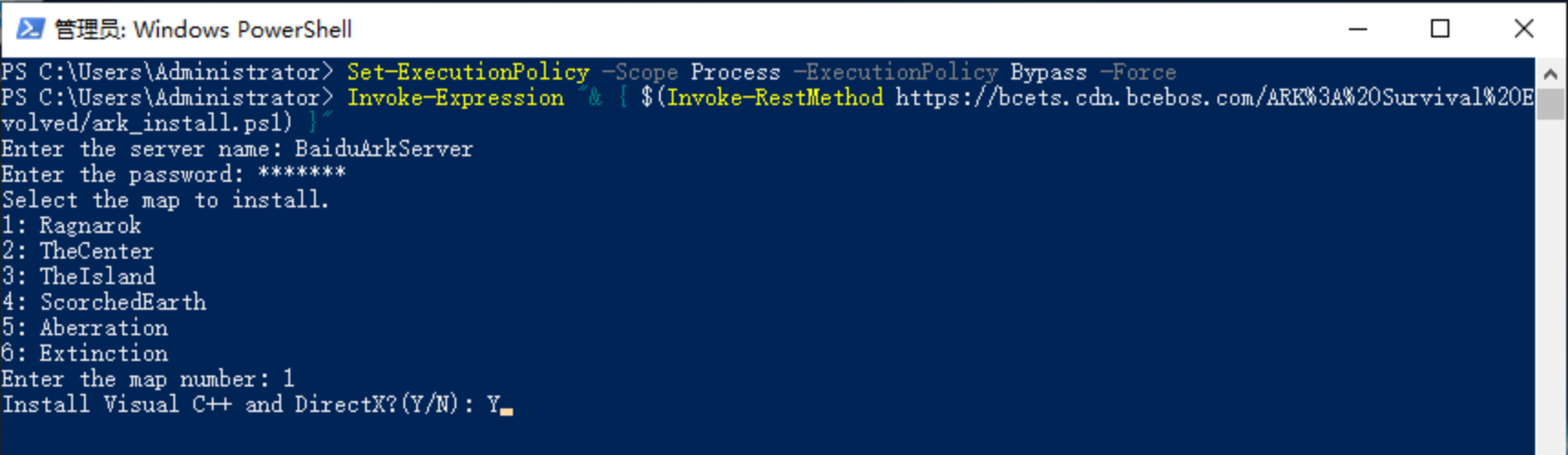 Invoke-Expression "& { $(Invoke-RestMethod https://bcets.cdn.bcebos.com/ARK%3A%20Survival%20Evolved/ark_install.ps1) }"