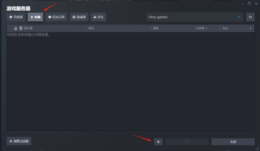 2.点击收藏,然后点击下面的+号,添加服务器。