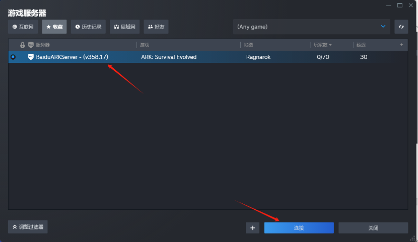 安装完成后,游戏服务端会自动启动,您就可以在客户端搜索并连接您的方舟专属服务器。