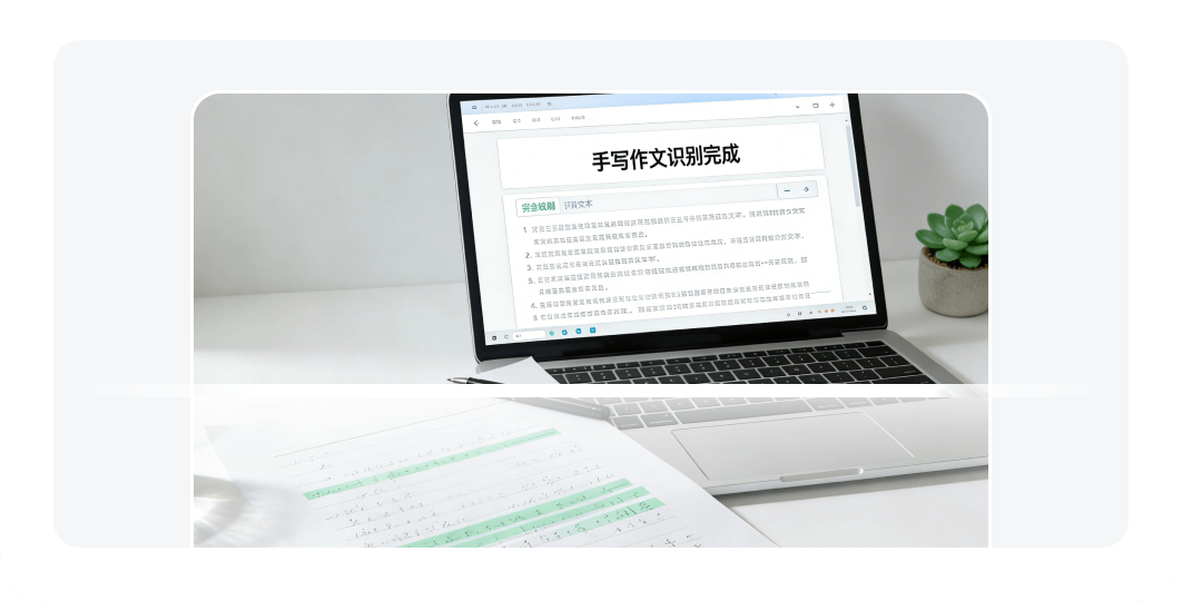 面向手写作文内容精准识别,支持单页/跨页与分栏格式;可过滤阴影与涂抹干扰,输出结构化文本便于处理