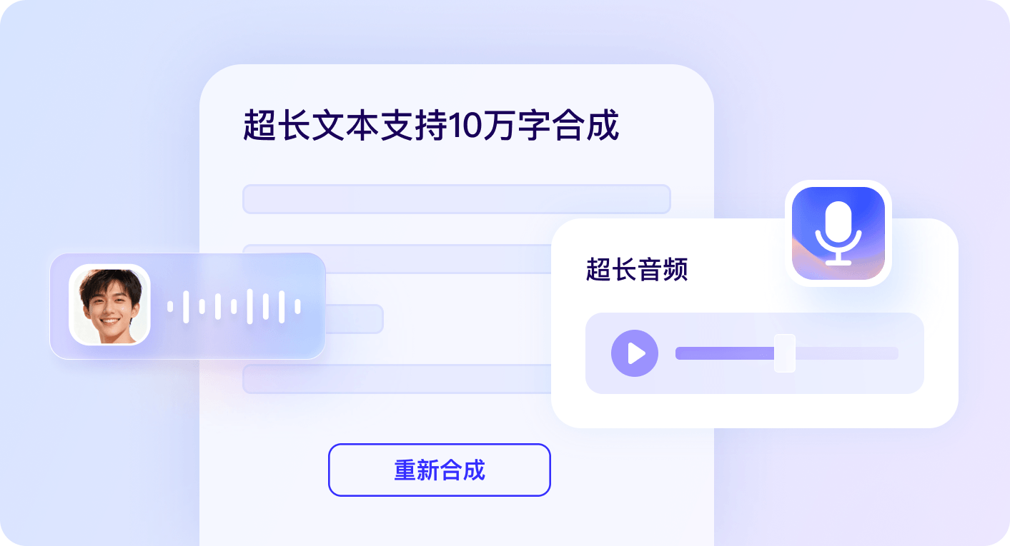 最高支持 10 万字文本一次性合成,无需拆分文本、拼接音频,操作便捷