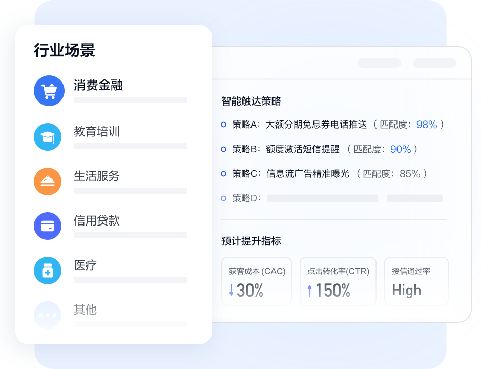 覆盖消费金融、信用贷款、教育培训、生活服务等多元场景,提供一站式智能化营销服务。
